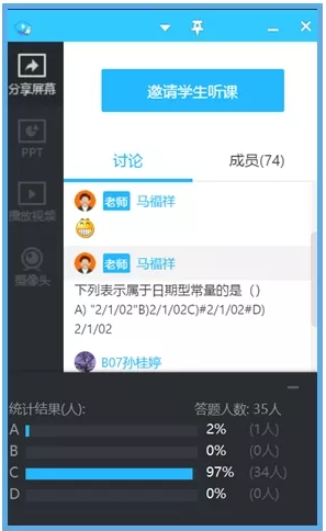 线上教学不是教师的独角戏,不能简单的由老师满堂灌,更不能将传统的线下课堂中的讲授部分复制到线上。线上教学应该利用互联网的便利性使知识得到更为广泛的传播,同时也需要将课程内容进行适当的优化,使其能更好的适应互联网的节奏和特点。线上教学更应该注重师生的互动,通过互动环节来提高员工的学习兴趣和学习效果。直播课程中普遍存在的问题是,老师看不到每个员工,无法实时掌握每个员工的听课状态;员工也不能及时地进行听课效果反馈,无法随时和老师进行沟通交流。为此,教师们积极思考对策,发现在“腾讯课堂”软件中,有一个交互答题卡,教师可以随时通过答题卡向员工发布答题选项。员工答题中,教师可以及时了解答题情况。在之后的教学中,老师们充分利用腾讯课堂的这一功能,在每讲解完一个知识点后,就在论区发布一道与知识点有关的选择题和选项,结合答题卡让员工进行选择。通过员工的答题情况,老师们可以及时了解参与人数与每个选项的选择情况,从而及时地掌握了员工对知识的掌握情况。同时,利用答题功能可以把员工吸引到课堂中,提高员工的课堂注意力,增强了教师对课堂的管控能力。