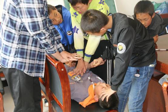 此外,志愿者们还开展了急救知识课,让小朋友们面对自然灾害的肆虐,工业交通事故的频发,电击、溺水、中毒病例的剧增,为自己和他人的生命健康与安全多一份保险。课上小朋友们都积极的学习急救知识与急救方法,纷纷为扮演“病人”的小朋友作出自己的急救方法。