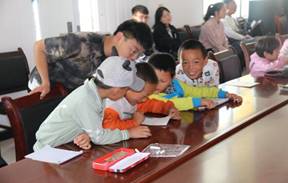 师大学子为小朋友分发试卷师大学子和小朋友一起造句子