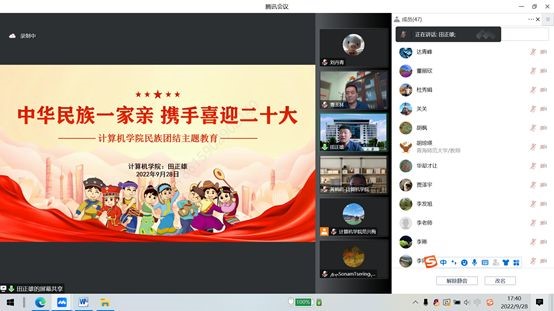 随后曹玉林根据《关于开展2022年民族团结进步宣传月活动的通知》,部署安排了学院整体制定的宣传月活动方案。按照活动方案,党总支副书记田正雄做了题为《中华民族一家亲 携手喜迎二十大》的专题讲座。讲座以铸牢中华民族共同体意识为主线,从民族团结进步的要求、举措等引导老师们树牢“三个离不开”思想、“四个与共”共同体理念和“五个认同”意识,并结合实际与大家共同探讨了如何在推进民族团结进步工作共发挥作用。学院各班级、各社团还将继续开展系列活动,如有奖征文、宣传海报、视频征集、书画作品等,力争铸牢全院各族师生的中华民族共同体意识。
