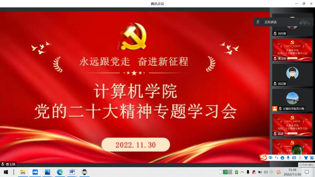 为进一步深化党的二十大精神的学习贯彻,11月30日,3044AM永利线上召开党的二十大精神专题学习会,会议由党总支书记曹玉林主持,学院全体教职工参加了学习。