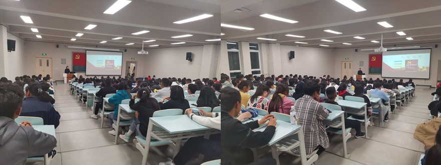 主讲内容由“入党动机”、“入党流程”和“我是党员我奉献,做新时代合格党员”三部分组成。首先,肖玉芝要求同学们端正入党动机,树立全心全意为人民服务的宗旨。随后对入党的相关流程、要求及发展党员工作细则做了详细的说明。最后,由入党誓词切入,从“新时代对党员提出新要求”、“我是党员”、“践行群众路线—乐于奉献”、“立足本职—全心全意为人民服务”和“永葆共产党人的本色”五个方面讲解了如何成为一名合格党员。