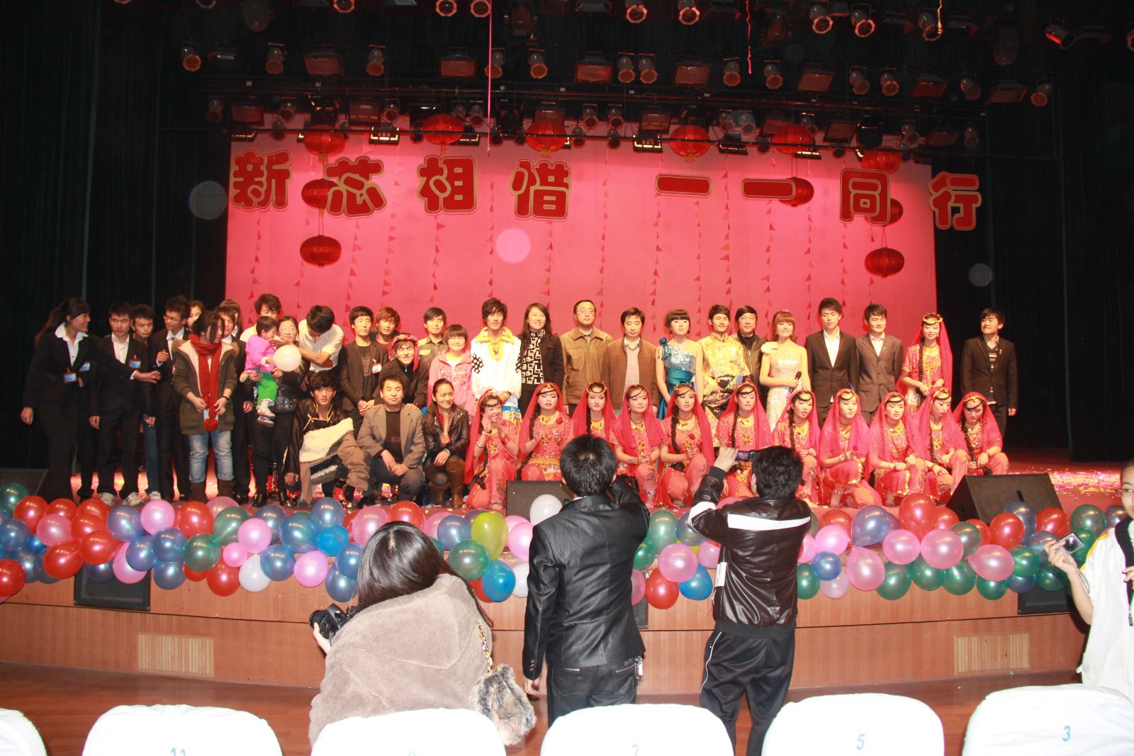 晚会在一场优美的《印度女》中圆满结束。所有演员和嘉宾们进行合影留念,将这一美好的时刻定格。相信这次晚会,给那些远离家乡的新生们一个家的感觉,让初来乍到的拘谨变得轻松,让军训中的疲惫烟消云散,也让新生们体会到老员工活的丰富多彩,使同学们以崭新的风貌拉开了老员工活的序幕,美好的明天在等待着他们去创造。