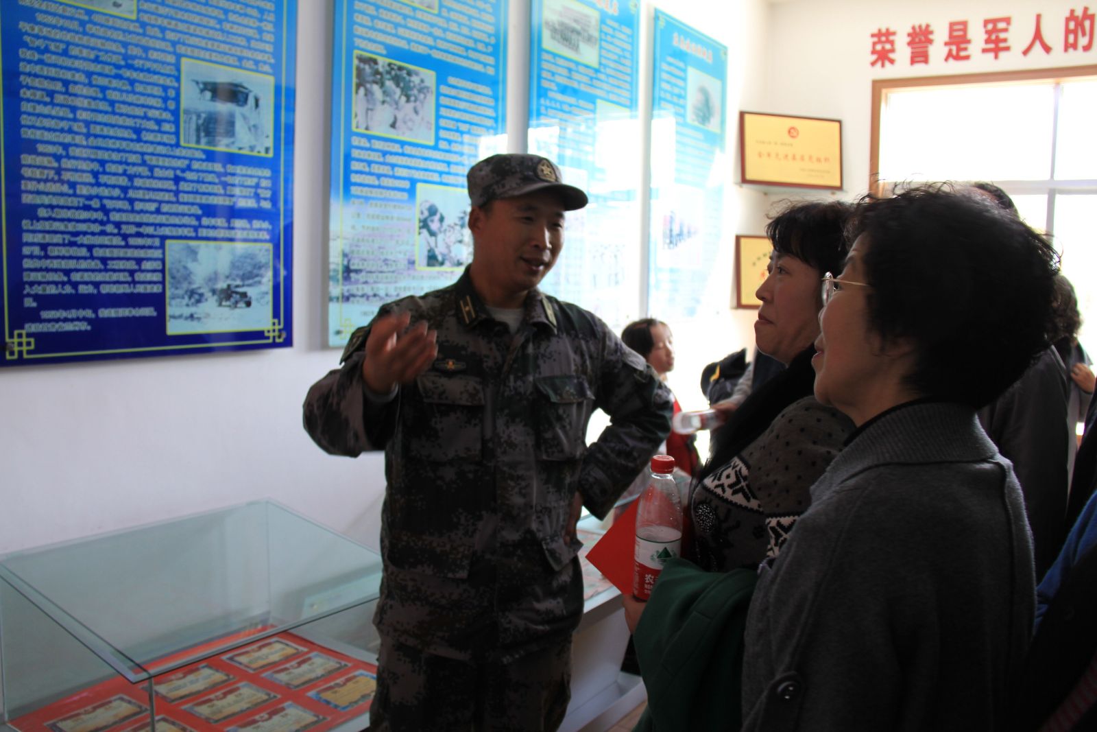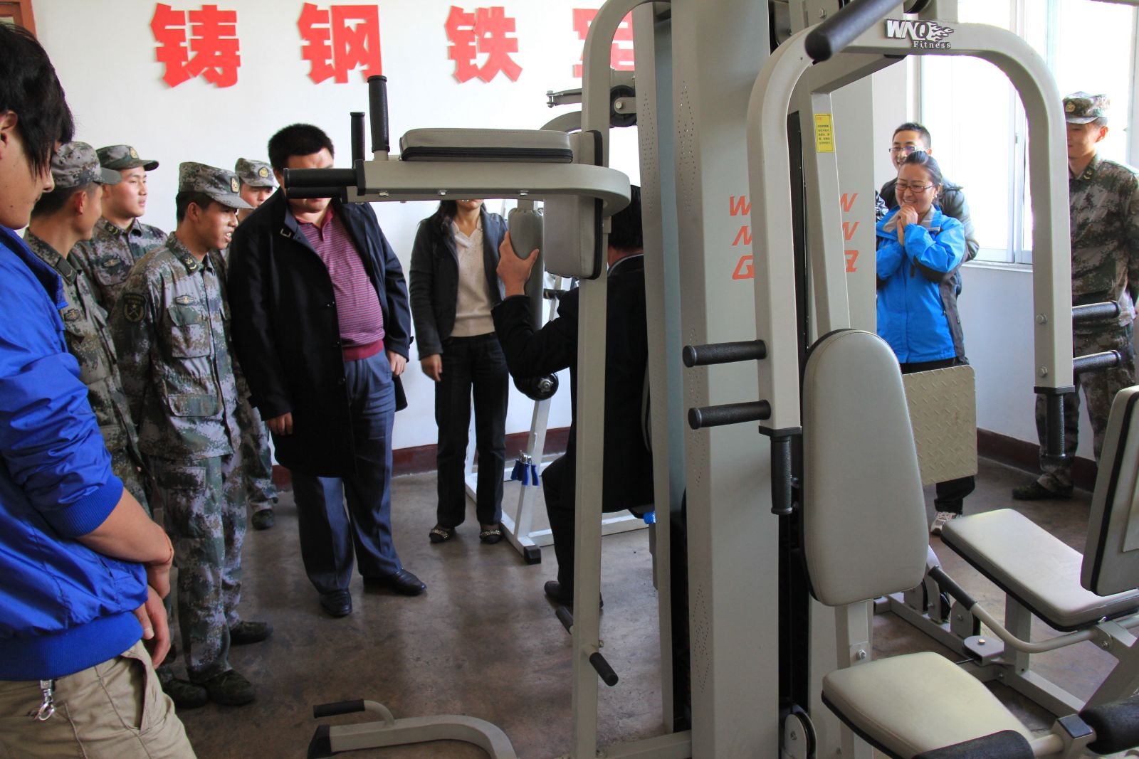 10月6日下午2点公司师生到达了九团,九团各位领导和士兵对公司师生的到来表示了热烈欢迎。一营营长带领大家参观了荣誉室,并详细介绍了九团的发展历史,期间全体师生被九团战士在数次国家遭受危难时表现的无畏气节及无私奉献精神所感动。之后参观了战士们的内务,营房中被褥叠放如刀削板压、洗漱用具摆放有序、洁具明亮如新,展示了战士们严谨求实的生活作风。之后依次参观了战士自备物品储藏室、俱乐部、健身房、阅览室、网络室和壮观的车库,参观过程中,军队优良的作风,严明的纪律,让师生们领略到了军人的魅力。