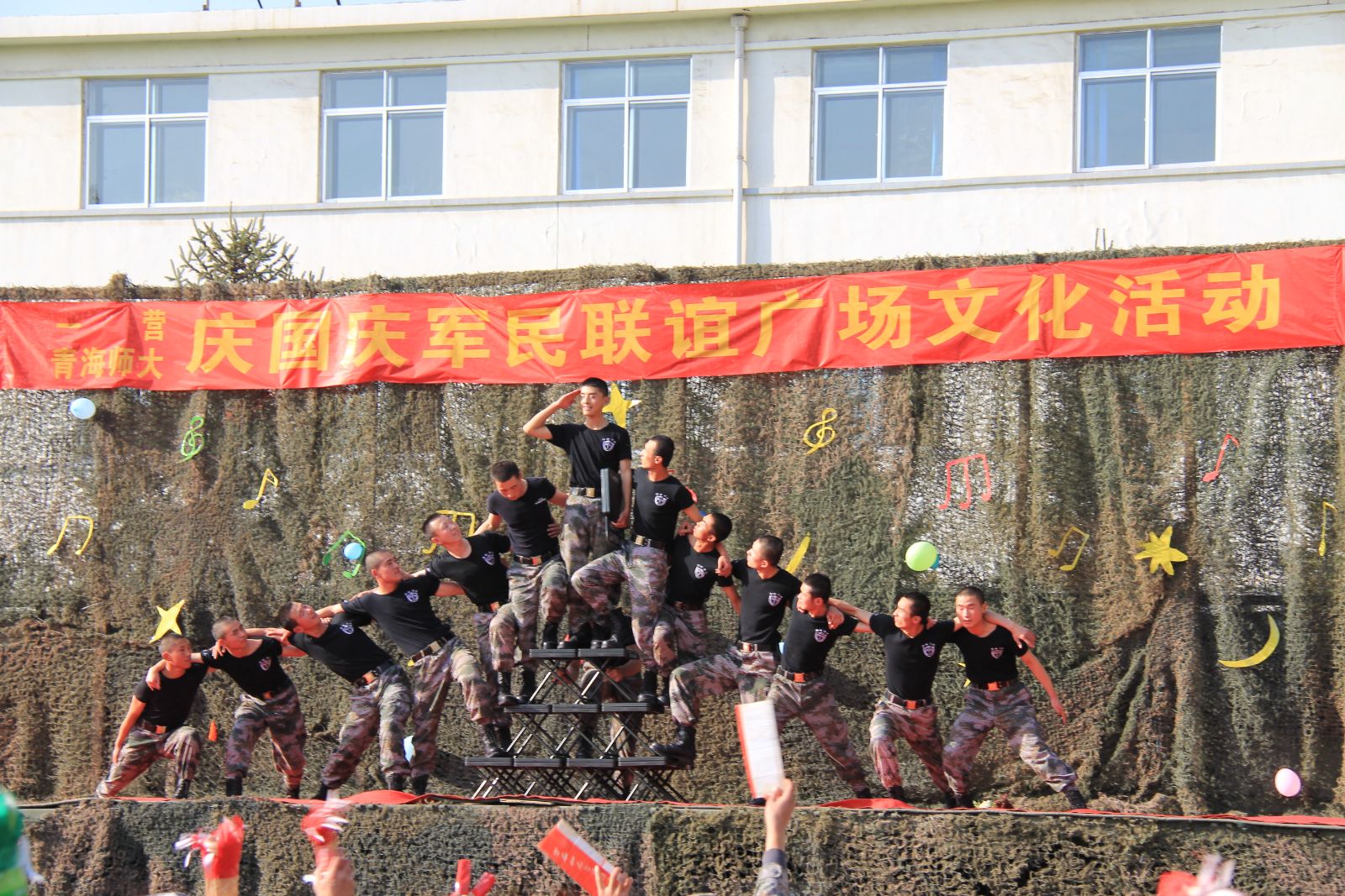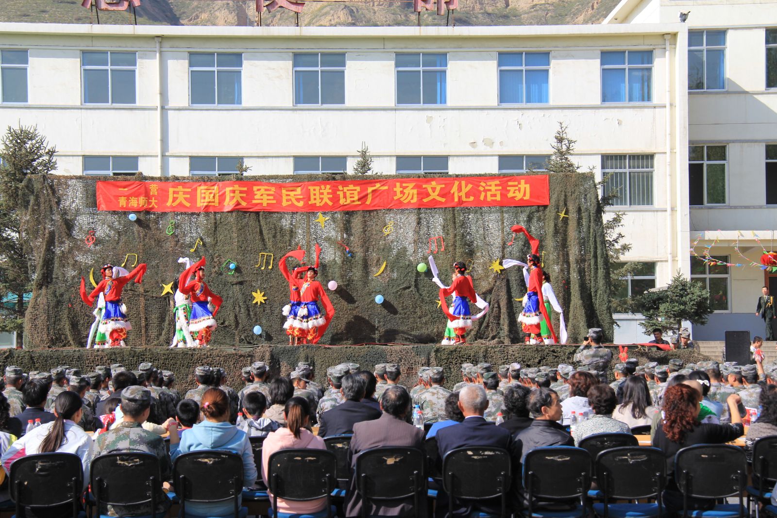 3点30分,军民联谊暨文化广场活动正式开始。在二连带来的舞蹈《把光荣扛起来》中开场,接着是一连带来的歌曲《千里之外》,获得了师生的一致好评,紧接着是由公司员工带来的藏舞《激情岁月》更是把活动带入了高潮。三句半《夸夸咱连队》、现代舞《雪舞的青春》、小品《睡吧,我亲爱的士兵兄弟》、街舞《舞动奇迹》、歌曲《三宝》、《我的好兄弟》、舞蹈《奔腾》等节目个个精彩迎来阵阵掌声,最后在舞蹈《折叠椅畅想曲》的动感中结束了此次演出。