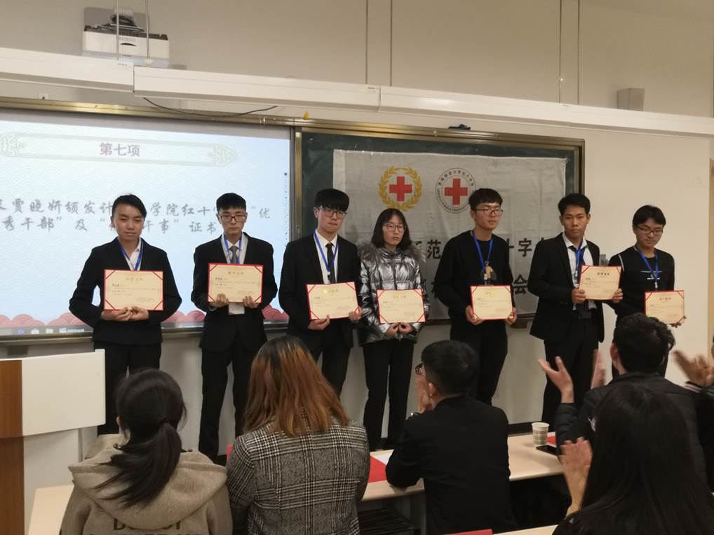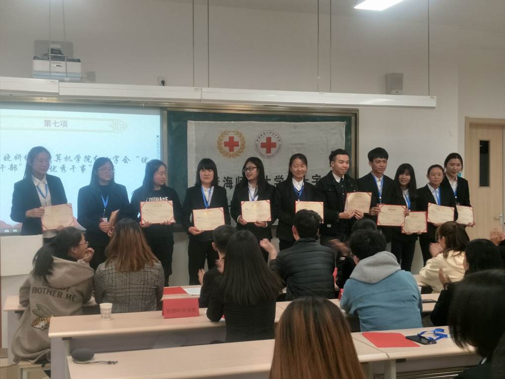 第四项:副会长贾晓妍为上一年表现优秀的社员颁发荣誉证书,校总会和其他学院红十字会代表为上一年表现优秀的社团干部颁发荣誉证书。